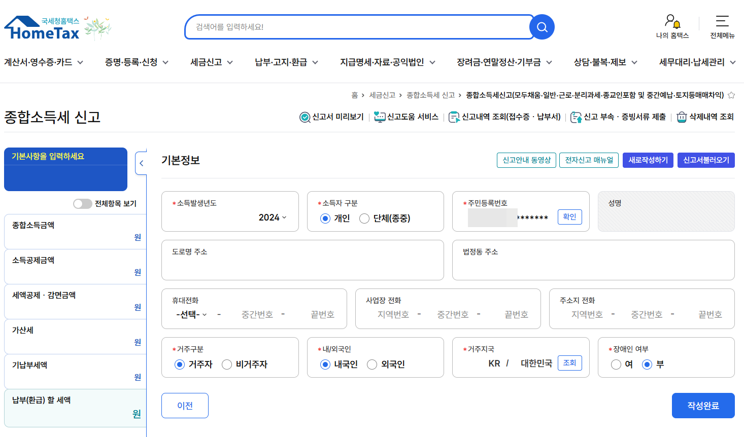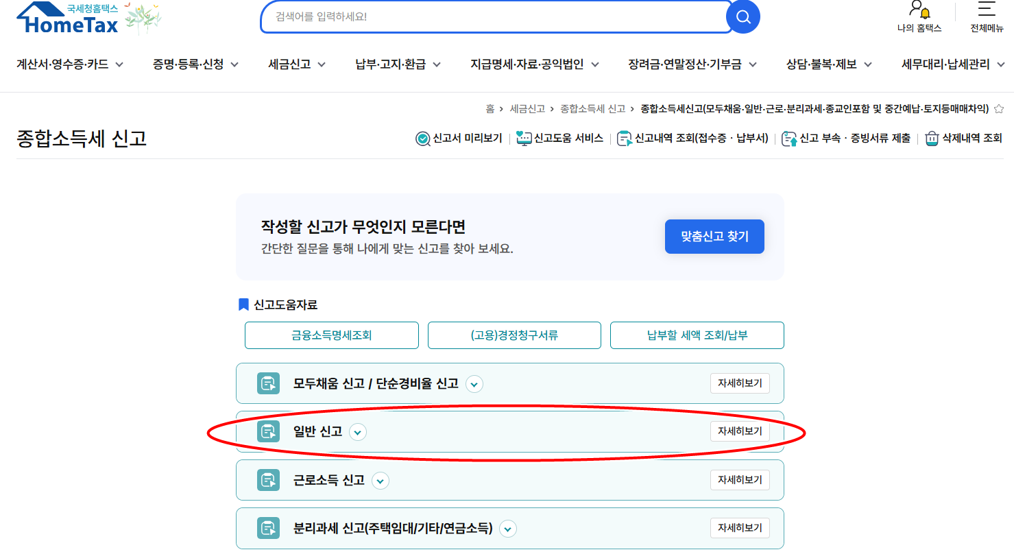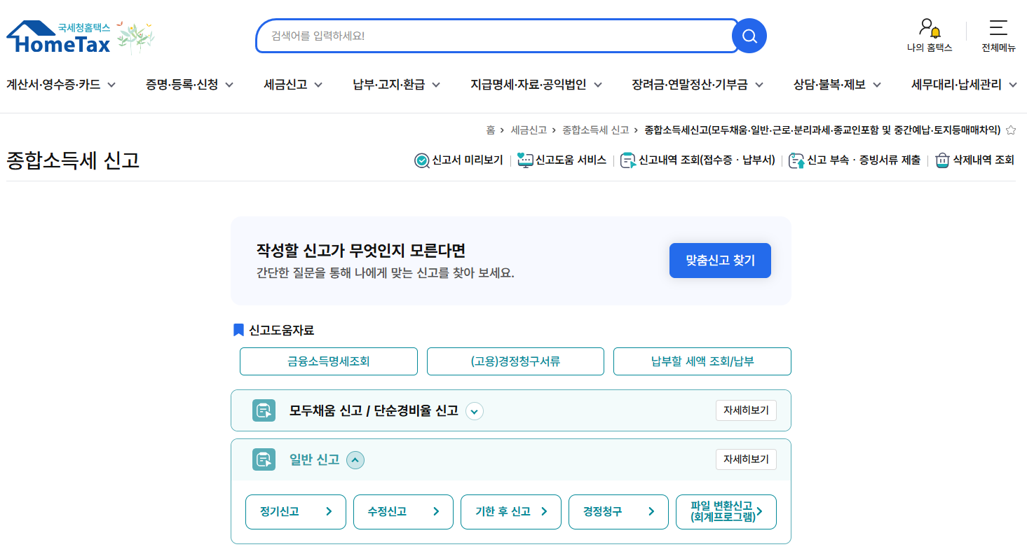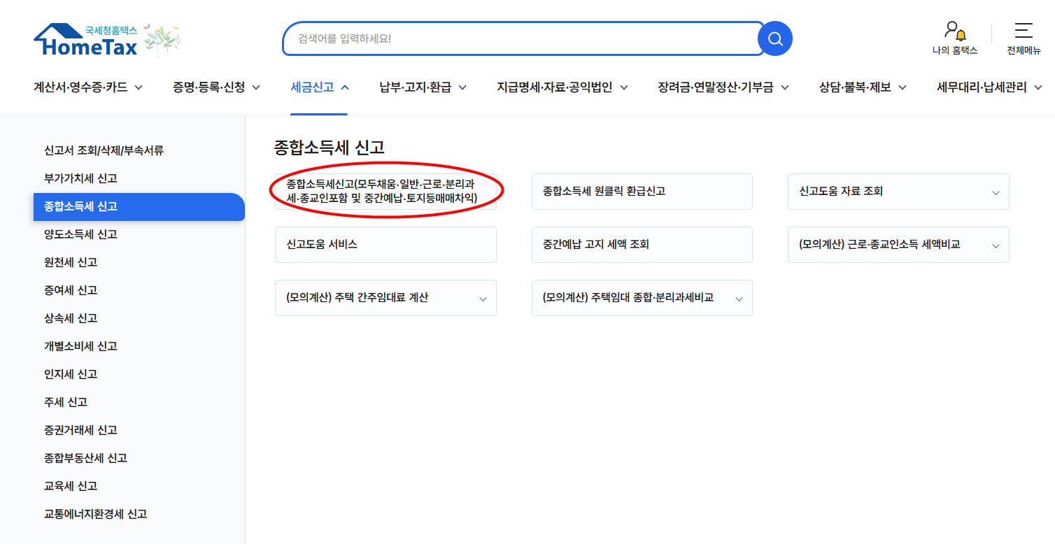- 로그인 후 → '종합소득세 신고'
